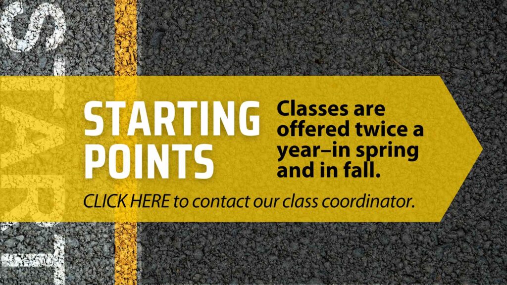 The next Starting Points class will begin in September. Come join us and find out more!